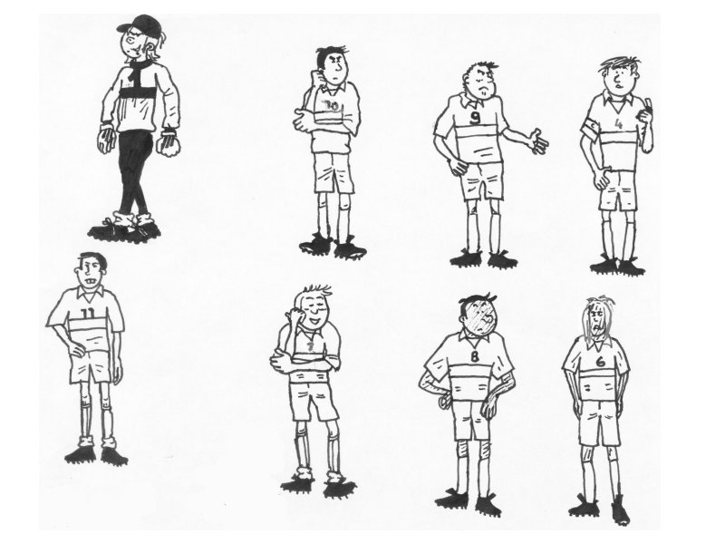Une histoire de foot: Fifoot, footballeur fictif sorti tout droit de l'imagination de Math, est le père de Ti-Fif, joueur de l'A.S.V., club rival de l'U.S. Ses équipiers sont, entre autres, Mikki, Péno, Manu et Riton.